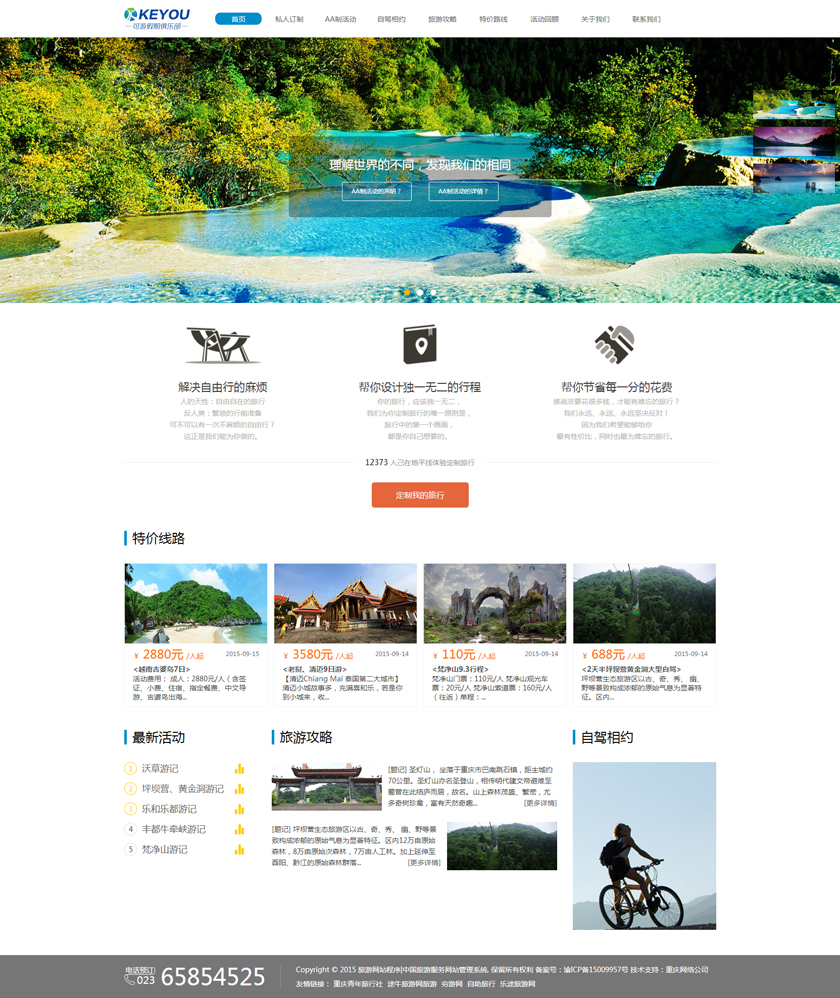 Project Description 6人游旅行网隶属于北京六人游国际旅行社有限公司。打造“为爱出行”:专为家庭,朋友,情侣间的旅行,提供私家小团精品游。打造高品质的旅行产品,解决传统跟团游和自由行存在的问题,将旅行服务做到臻善臻美。 Official website address 辽宁http://www.keyoujq.com I want to share