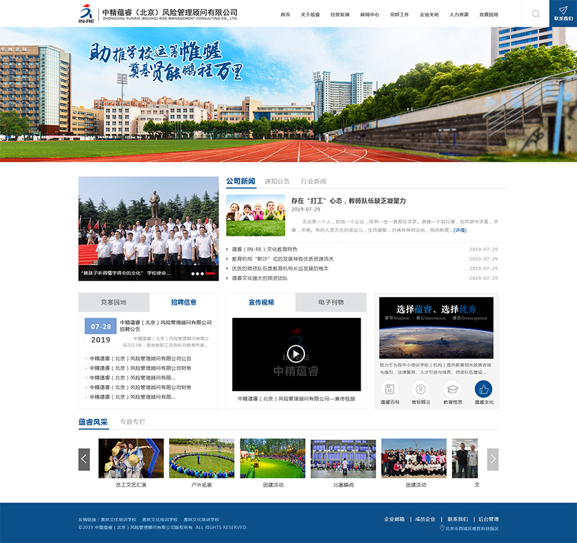 Project Description 中精蕴睿(北京)风险管理顾问有限公司2013年,现有教职工及各科目教育专家80多人,致力于为各中小培训学校(机构) 提供教育相关政策咨询与指引、法律服务、人才引进与培养、师资队伍建设与培训、教学教研与学科创新、市场营销企划、文化 理念塑造与品牌输出的专业化教育管理全方位的综合服务。 Official website address 辽宁http://in-re.com/ I want to share